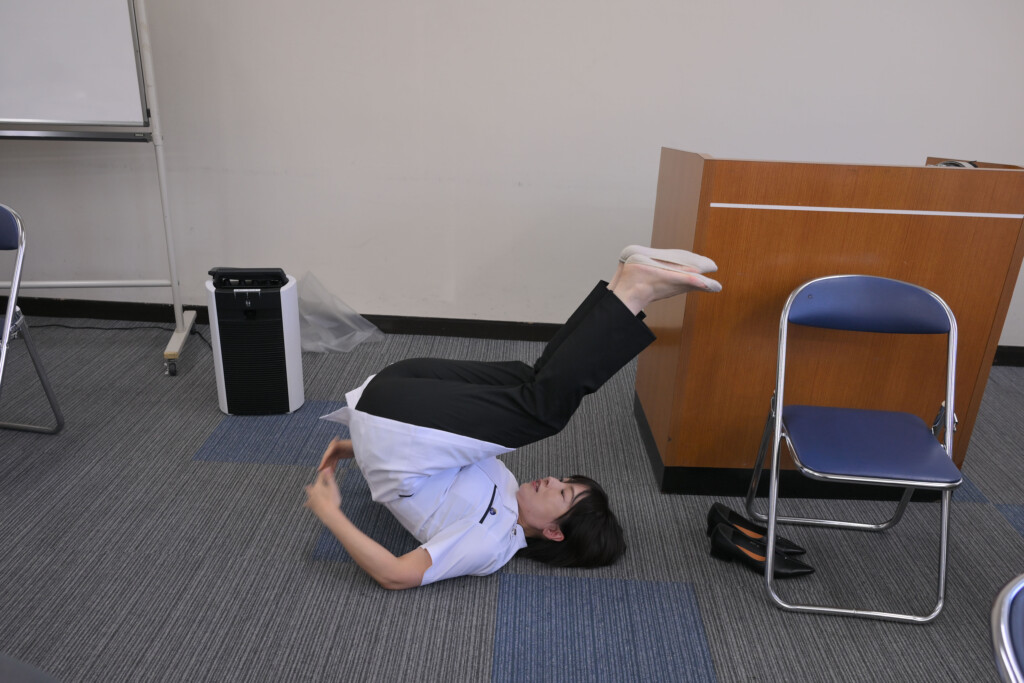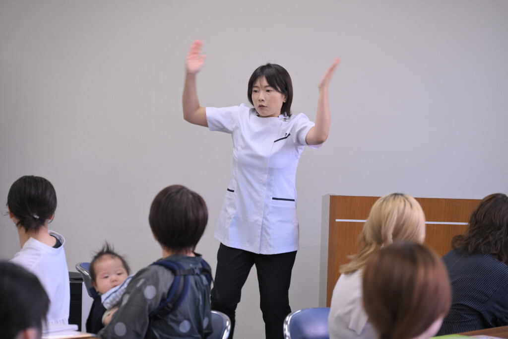 ちょっと間違えたら危険になるかもしれない赤ちゃんの膝、股関節の曲げ伸ばしを自ら実演!